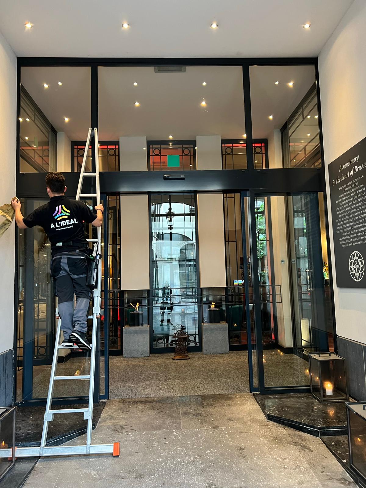 Bij A L'Ideal reinigen we ramen op elke hoogte, met professioneel materiaal en osmosewater. Dat betekent: geen strepen, geen vlekken en geen zeepresten. Voor woningen werken we snel en netjes, zonder dat je er last van hebt. Voor bedrijven en grotere gebouwen zetten we hoogwerkers in zodat ook de bovenste verdiepingen er weer stralend uitzien.